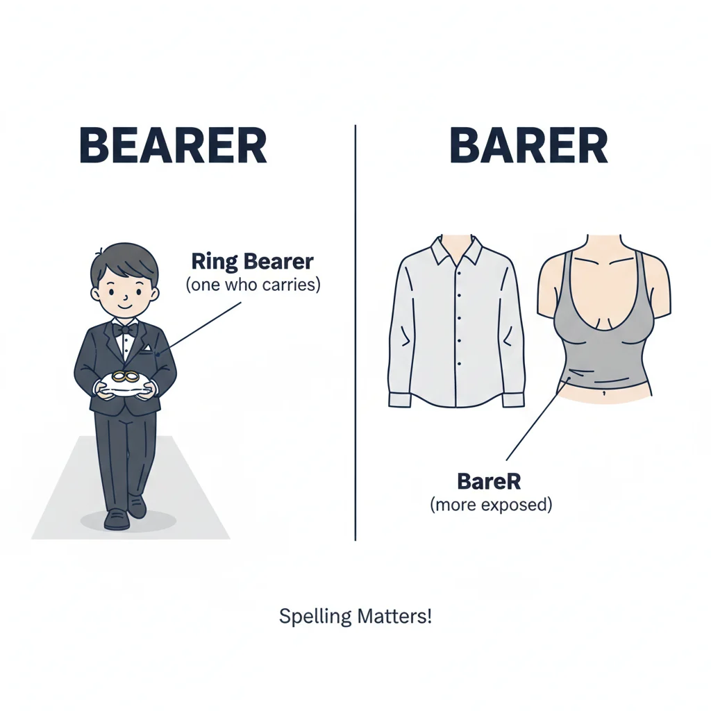 Many English learners and even native speakers search for bearer vs barer because the two words look and sound almost the same. This confusion shows up often in common phrases like “bearer of bad news” and “ring bearer.” A single wrong letter can change the entire meaning of a sentence—and sometimes make it sound embarrassing or incorrect.